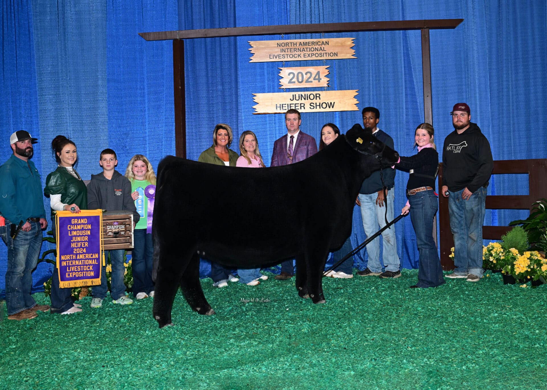 Division II Champion: TASF Lady Gaga 815L, 9/27/2023, 84% Limousin, double black, double polled, sired by TASF Grey Goose 333G ET, out of AUTO Crowning Day 204G, exhibited by Siddalee Portwood, Versailles, Ky.