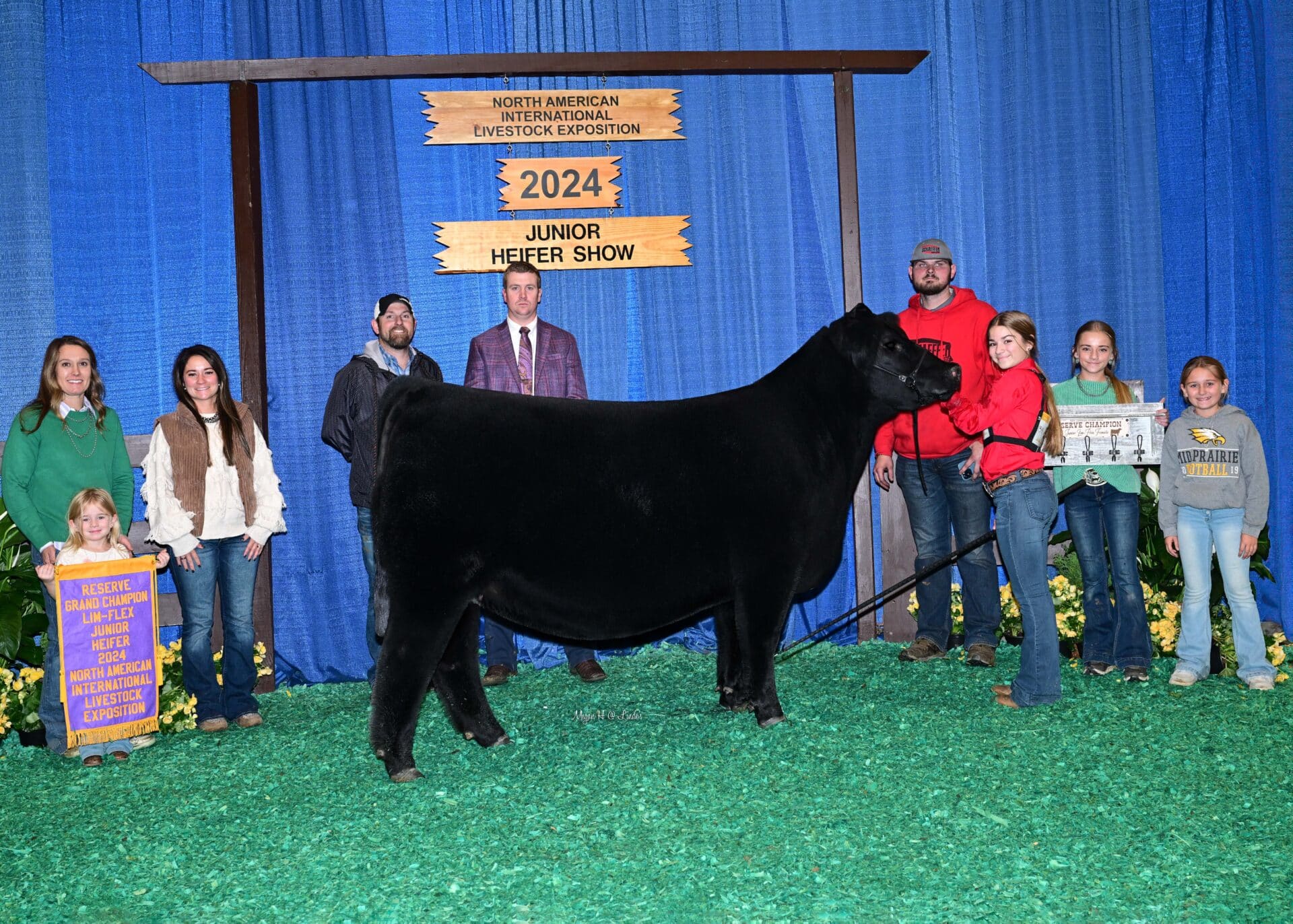 Champion Bred & Owned Limousin Female: Legacy’s Meg, 1/26/2024, 79% Limousin, double black, double polled, sired by TASF Hole In One 411H ET, out of Legacy’s Goddess, exhibited by Jocelyn Ruppert, Witt, Ill.