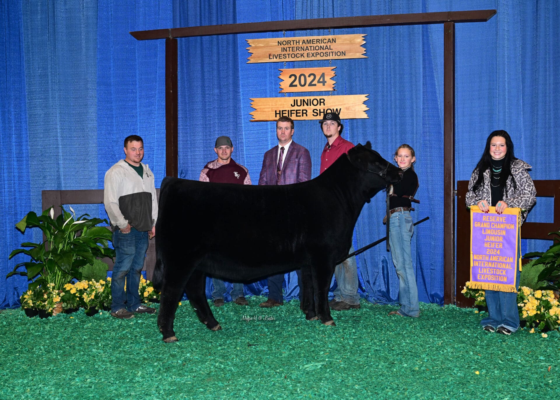 Reserve Champion Junior Limousin Female: TASF Lady Gaga 815L, 9/27/2023, 84% Limousin, double black, double polled, sired by TASF Grey Goose 333G ET, out of AUTO Crowning Day 204G, exhibited by Siddalee Portwood, Versailles, Ky.
