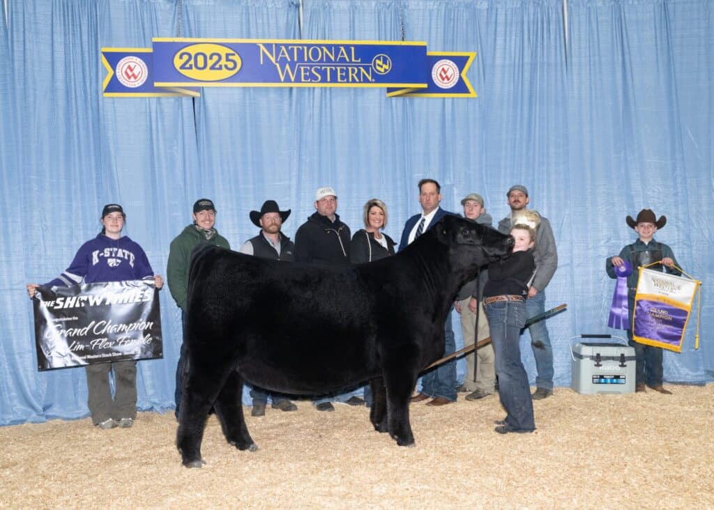 Division I champion: MOSJ Khloe Mae 001M, 4/25/2024, 57% Lim-Flex, double black, double polled, sired by MAYC Gold Buckle 624G, out of Schilling Khloe ET, exhibited by Jance Mosbarger, Goodland, Kan.