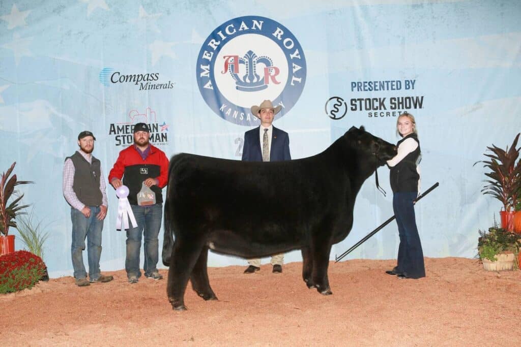 Division I champion: L7 Johnny Ringo 1004J ET, 3/10/3031, 50% Lim-Flex, homozygous black, homozygous polled, sired by KR Synergy, exhibited by Memphis Peterson, Pukwana, S.D.