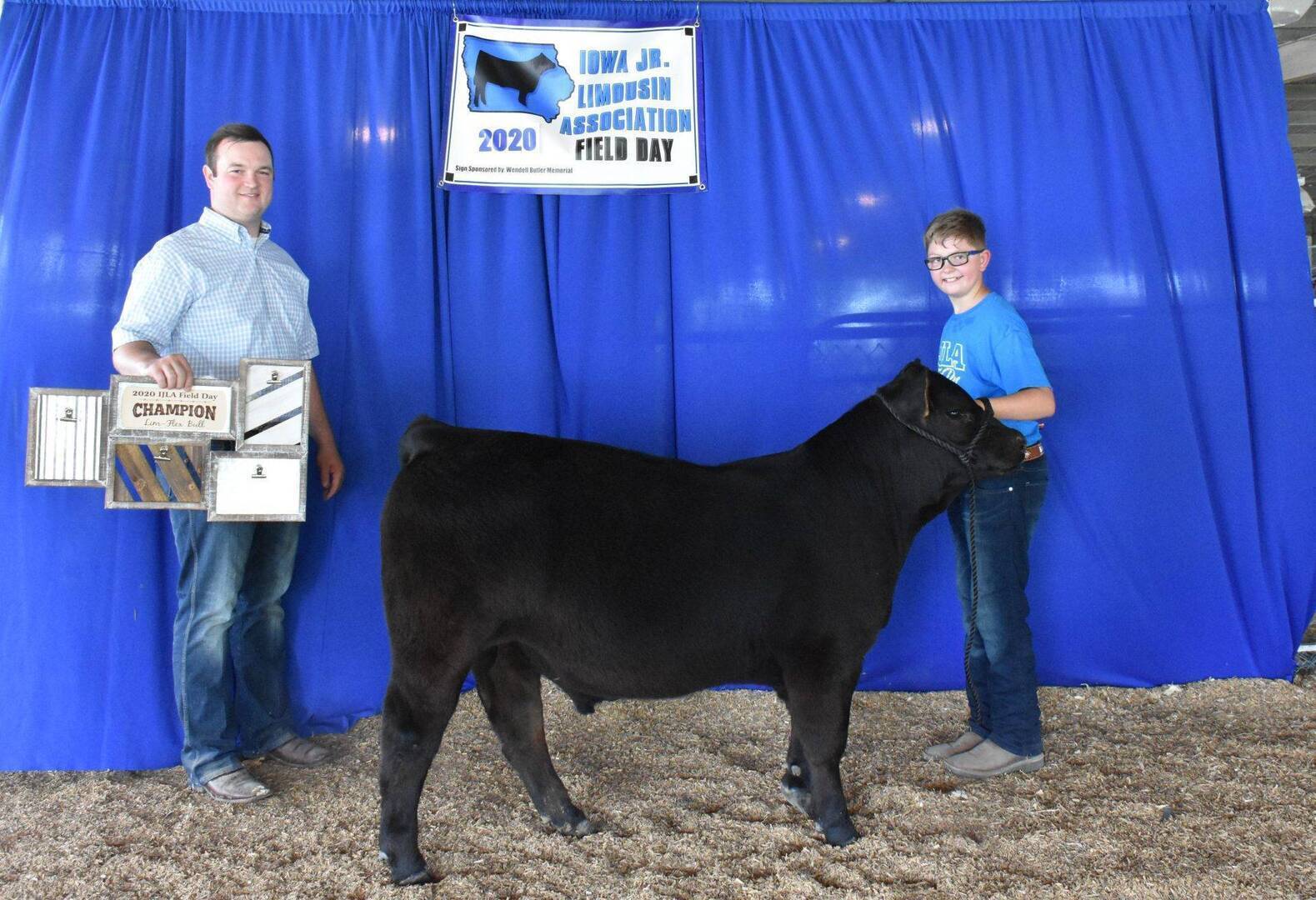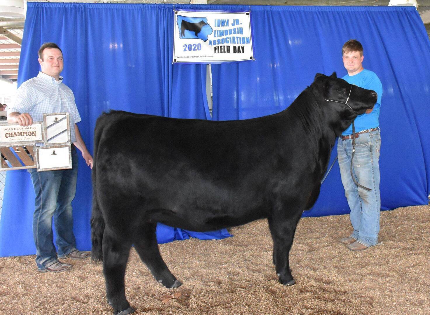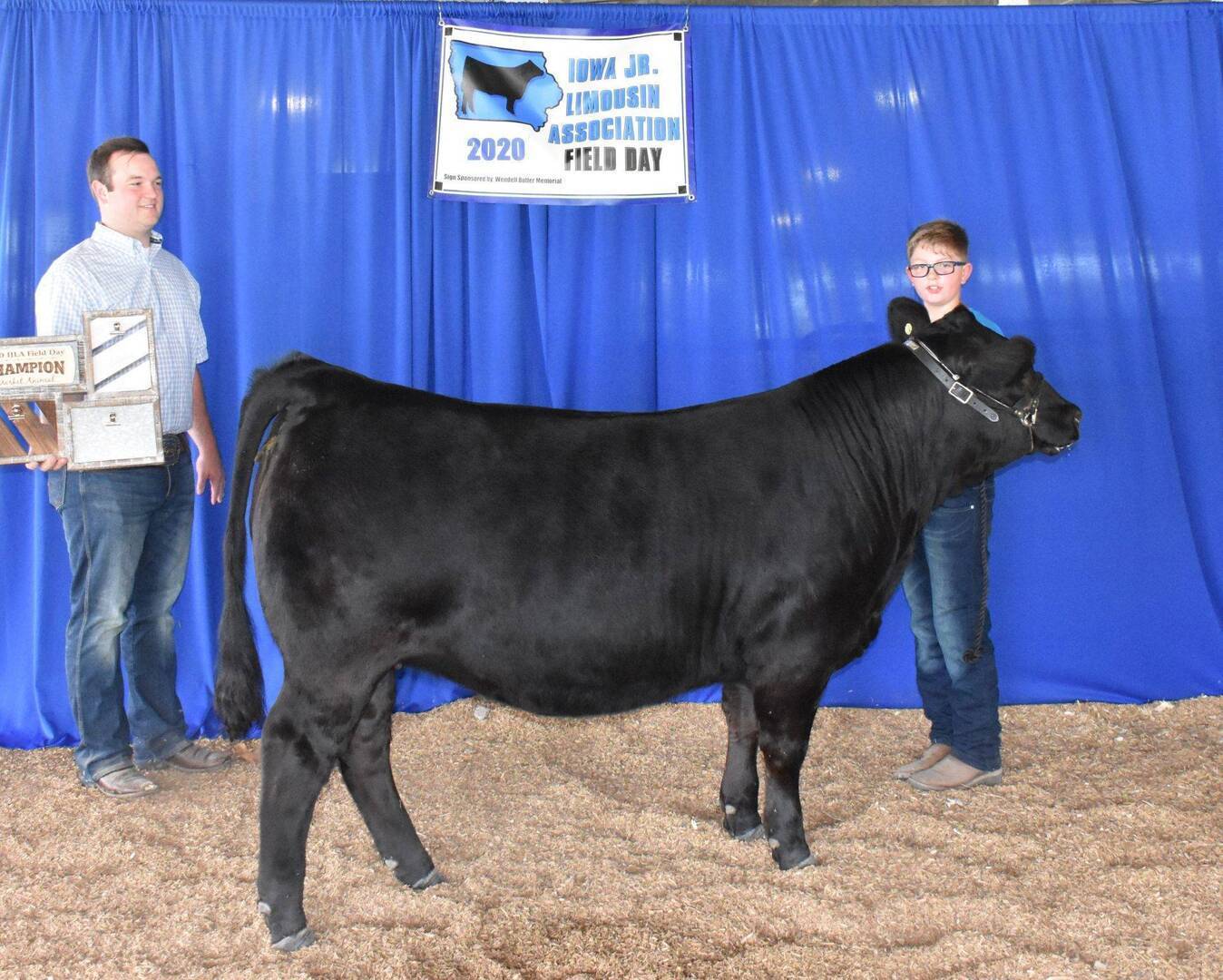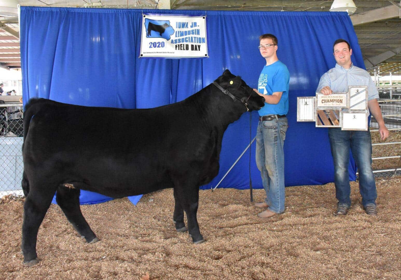 Grand champion market animal: MSHP Goldenrod, 5/16/2019, black, 1,125 lb. heifer, sired by DEBV Coalminer, exhibited by Mason Shipman, Treynor, Iowa.