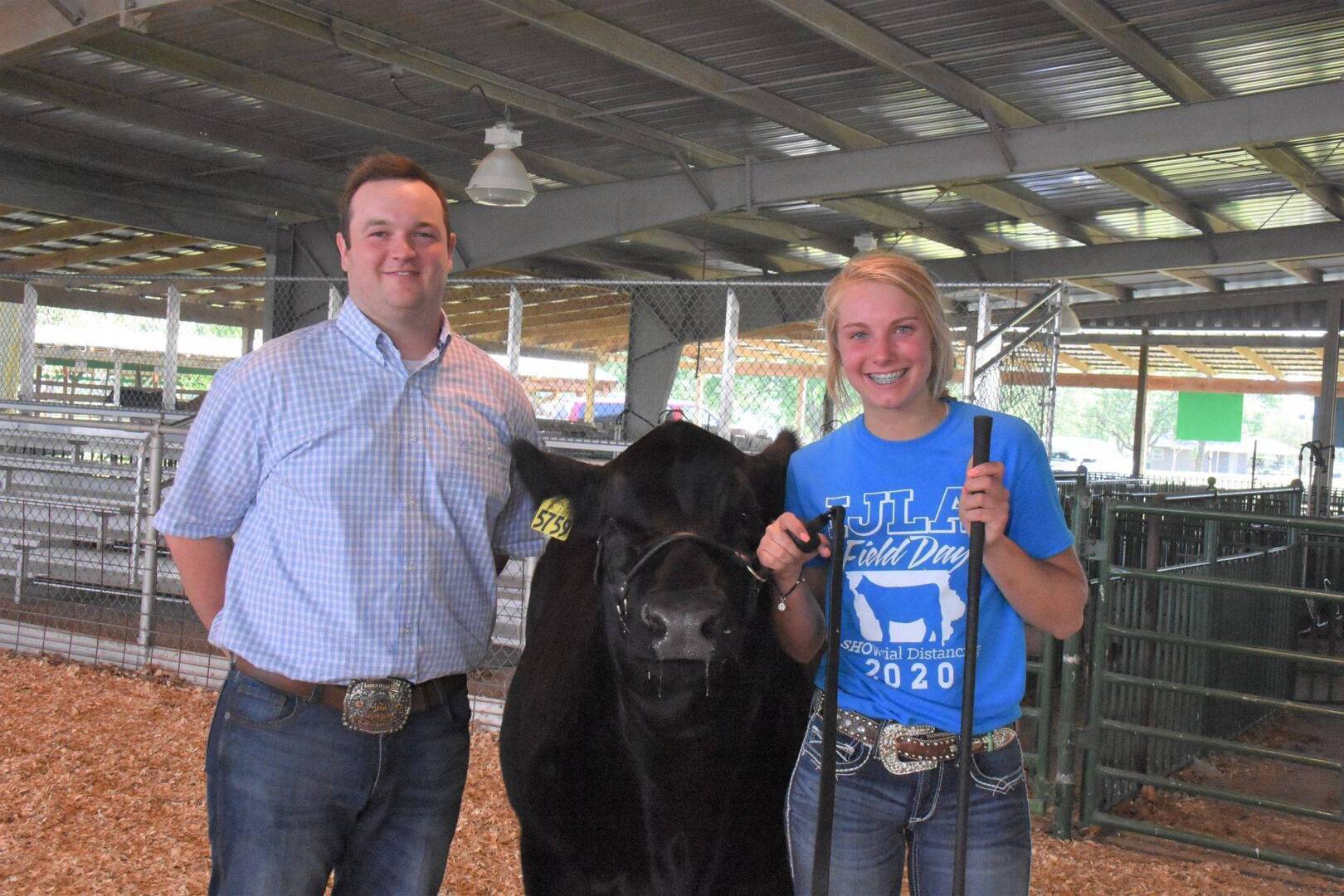 Reserve champion market animal: Straight 930G, 5/9/2019, black, 1,240 lb. steer, sired by MAGS Antelope, exhibited by Leslie Bell, Walcott, Iowa.