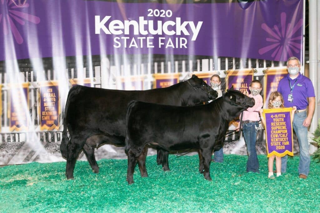 Grand champion Limousin cow/calf pair: AUTO Rainy Day, out of PFL Hail Storm, exhibited by Siddalee Portwood, Versailles, Ky.