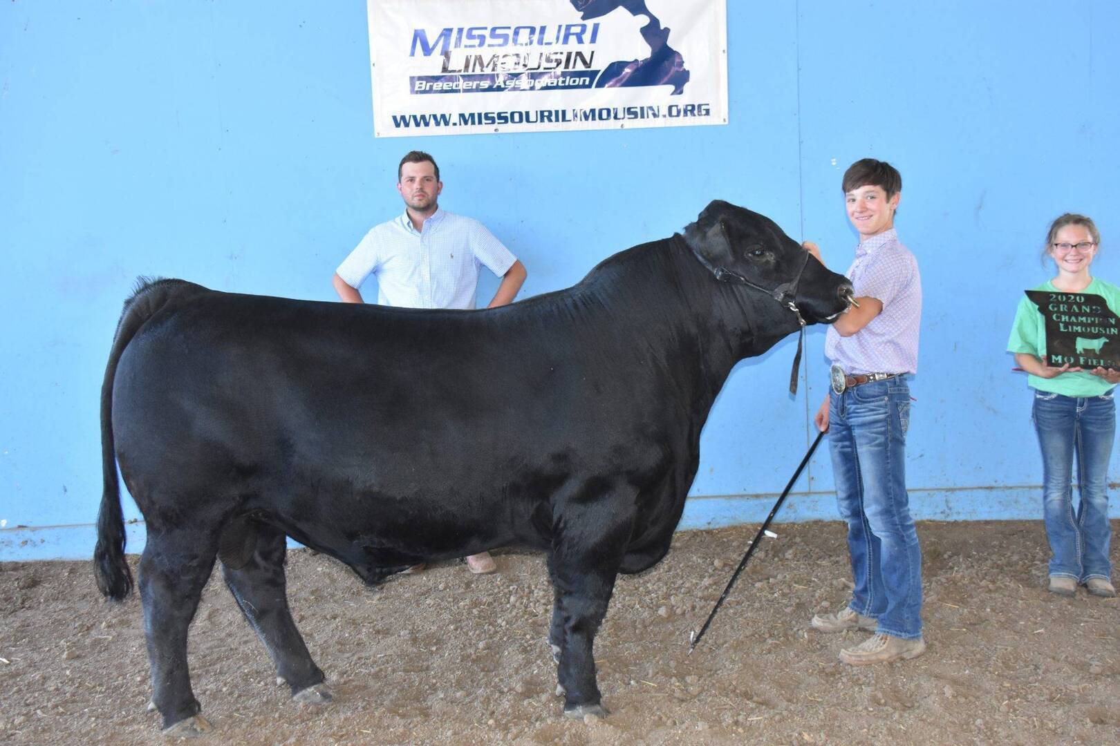 Grand champion bull: GBKR 445F, 11/1/2018, Lim-Flex, sired by AUTO Silverado, out of MAGS Your Choice, exhibited by Gage Baker, Fullton, Mo.