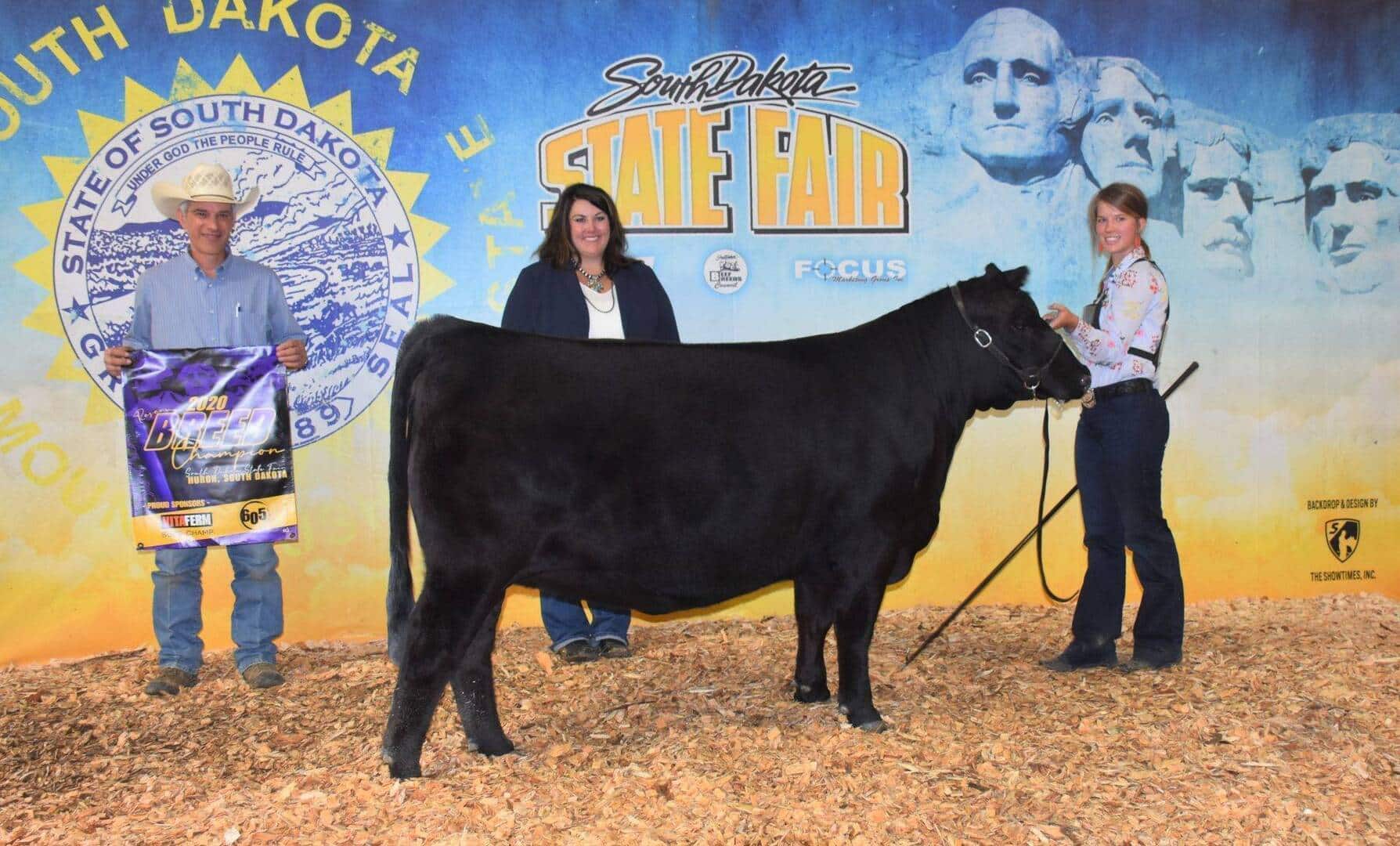 Grand champion Lim-Flex female: L7 Heartbreaker 011H, 3/5/2020, sired by Conley Express 7211, out of L7 Yuma 122Y, exhibited by Memphis Peterson, Pukwana, S.D.