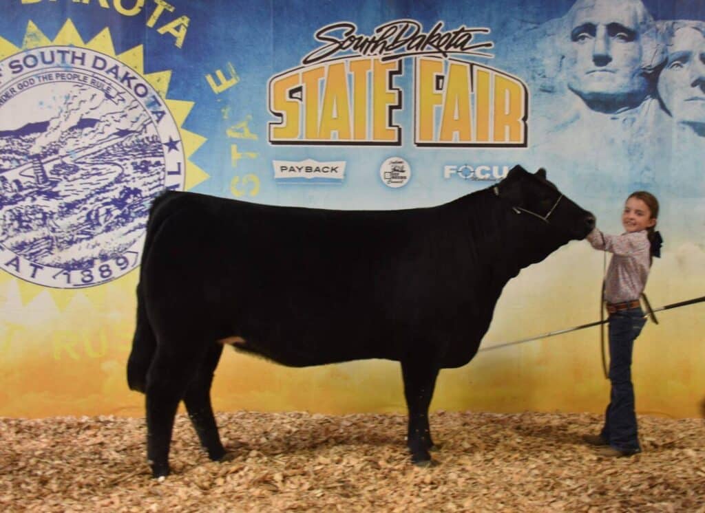 Reserve champion Lim-Flex female: L7 Gold Digger 932G, 2/20/2019, sired by ICC Pay Raise 4886, out of Miss L7 745E, exhibited by Delaney Peterson, Chamberlain, S.D.