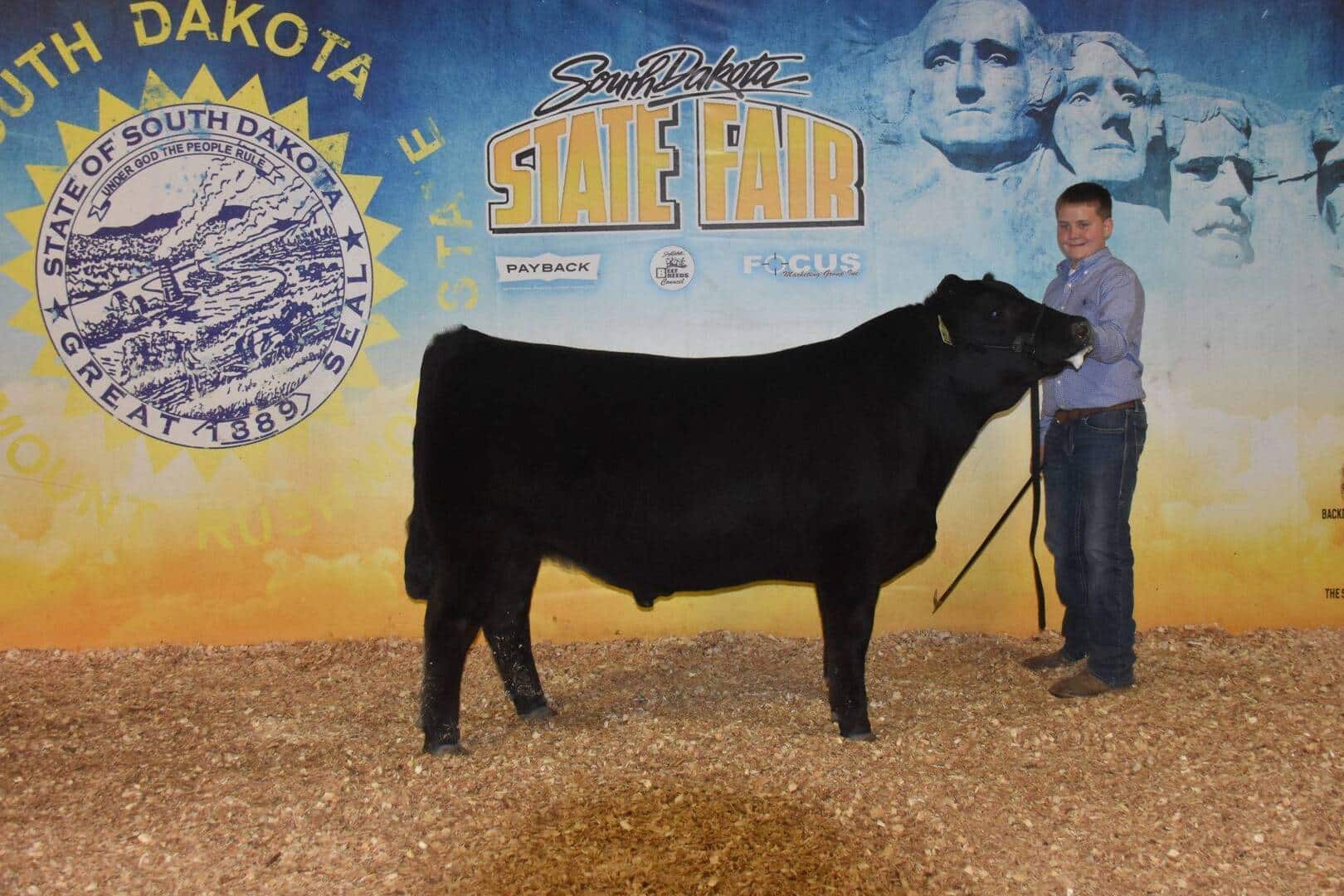 Grand champion Lim-Flex female: L7 Firefly 848F, 2/25/2018, 50% Lim-Flex, black, homozygous polled, sired by BSF Hot Lotto 14501, exhibited by Memphis Peterson, Pukwana, S.D.
