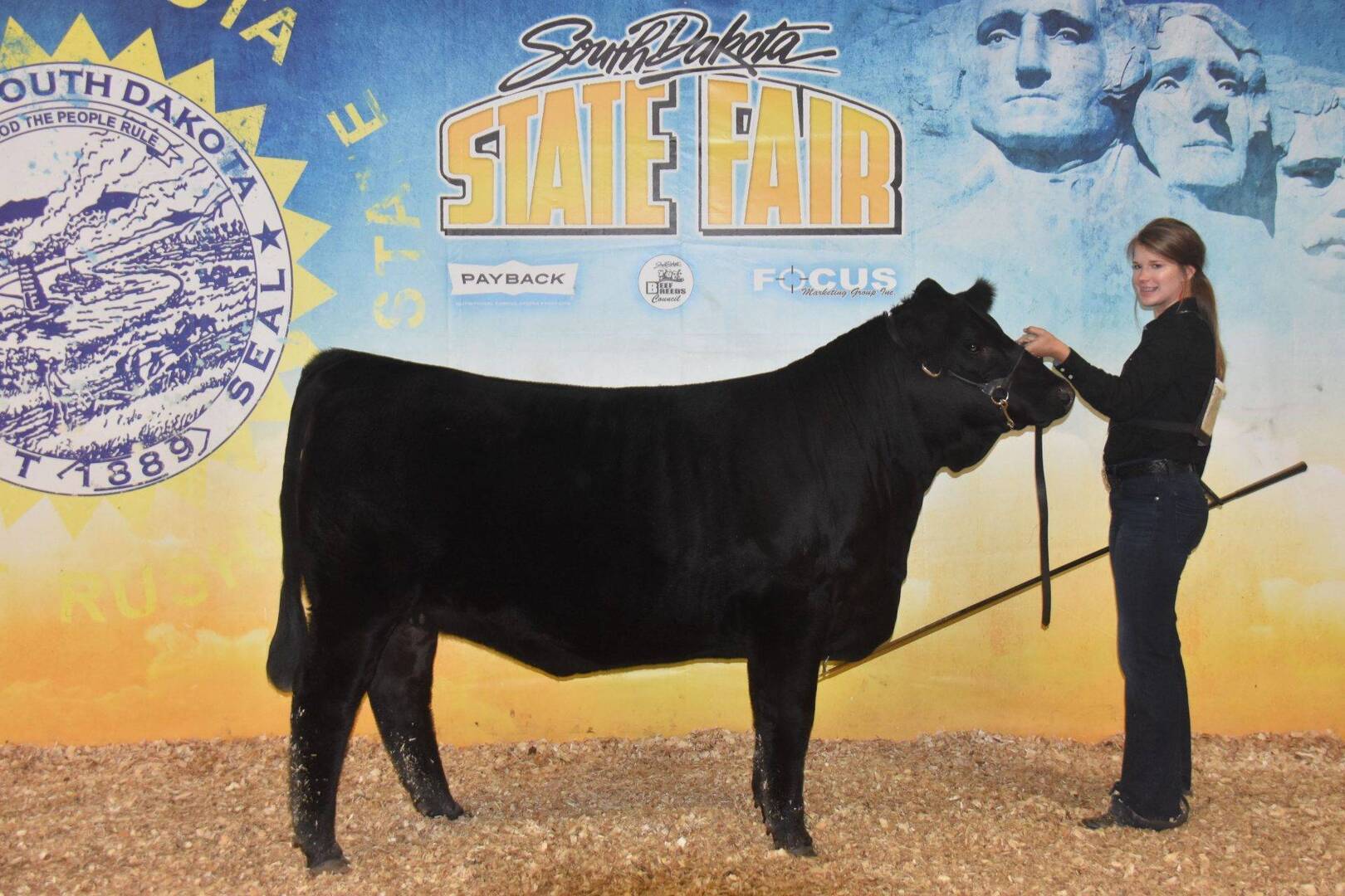 Reserve champion Limousin female: L7 Gummy Bear 952G, 5/10/2019, 85% Limousin, black, polled, sired by L7 Exchange Rate 7034E, exhibited by Rory Peterson, Pukwana, S.D.