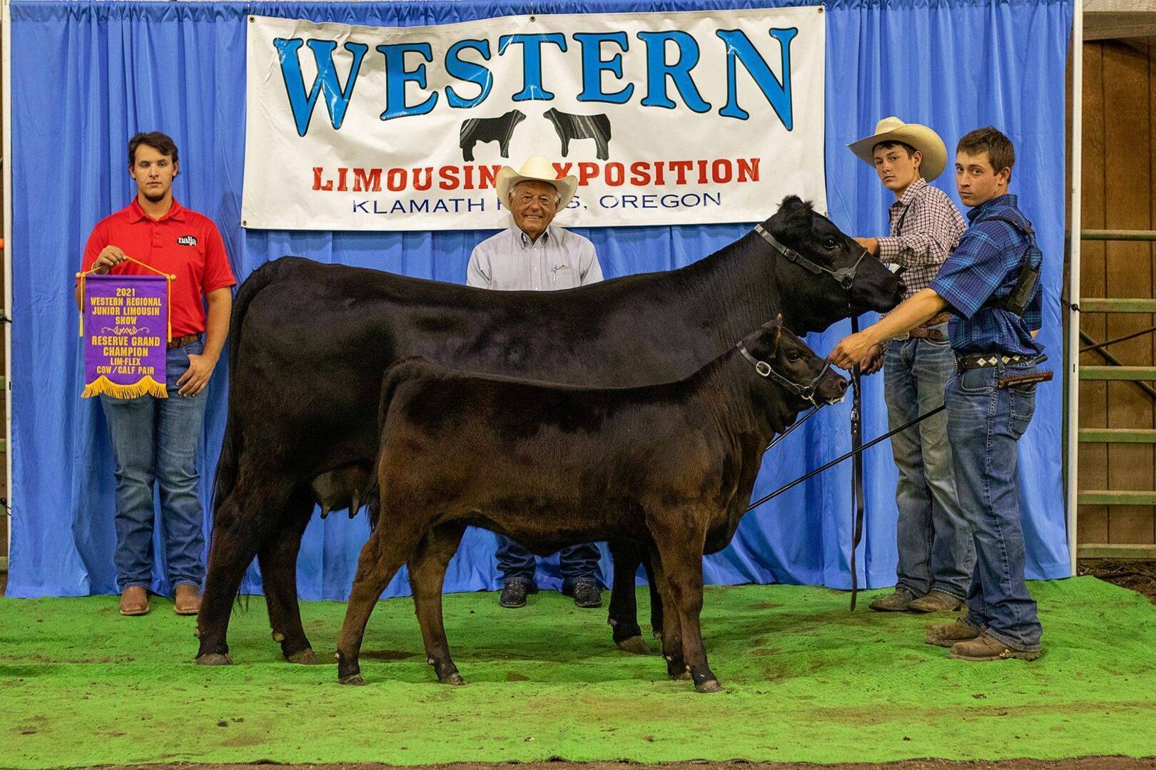 Reserve champion Lim-Flex cow/calf pair: CIC Frieda 39F, 3/9/2018, 43% Lim-Flex, homozygous black, homozygous polled, sired by PA Full Power 1208, exhibited by Tate Freeman, Klamath Falls, Ore.